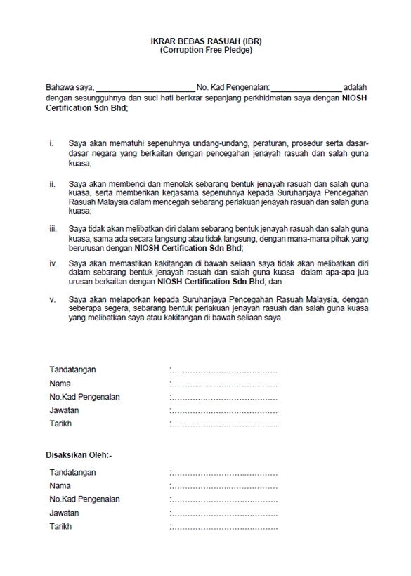 Komitmen NIOSHCert ke arah Perangi RASUAH