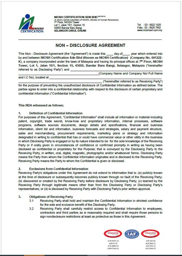 10 – Perjanjian Kerahsiaan Maklumat