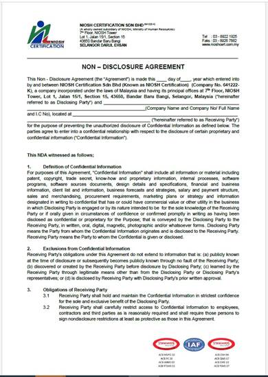 4 – Non Disclosure Agreement