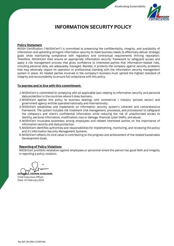 1 – Information security policy